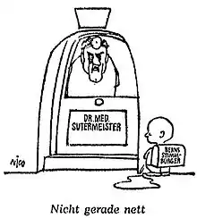 One of approximately 35′000 cartoons that Nico drew for the Tages-Anzeiger: Bernese city counciller Sutermeister's deselection after the schoolbook affair.