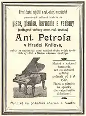 - ↑ "PETROF Company history". Petrof.cz (in German). Petrof. Archived from the original on 2016-03-04. Retrieved 2012-06-20.