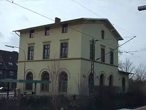Kleinenbroich station is a through station in the town of Korschenbroich in the German state of North Rhine-Westphalia. The station was opened on 17 January 1853[5] on the Mönchengladbach–Düsseldorf railway opened between Mönchengladbach and Neuss by the Aachen-Düsseldorf-Ruhrort Railway Company on 16 December 1852.[6] It has two platform tracks and it is classified by Deutsche Bahn as a category 5 station.[1]