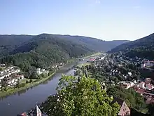 The Kleiner Odenwald (“Little Odenwald”) is the southern part of the central German hill range, the Odenwald, and is up to 567.8 m above sea level (NHN).[1] It is also part of the natural region of Sandstein-Odenwald in the north of the state of Baden-Württemberg. Lying east-southeast of Heidelberg and south of the River Neckar, which separates the Kleiner Odenwald from the rest of the Odenwald, its landscape is shaped by the underlying sandstone that also dominates the northern Odenwald.