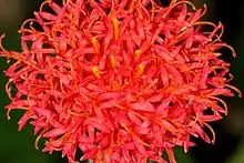 Kleinia stapeliiformis is an evergreen succulent plant native to the Cape Provinces and Northern Provinces of South Africa.[1] It is sometimes referred to as the "pickle plant" or (inaccurately) as the "pickle cactus", due to its form. It grows erect, leafless stems with soft spines, and displays a green-and-white pattern visually similar to a cucumber. It grows up to 30 cm tall, and displays red or orange flowers similar to those of a thistle in the summer. [2]