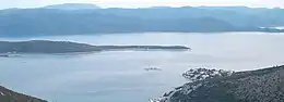 ![]() The tip of the peninsula seen from the mainland, with the Lopata islet (left) and larger landmass of Pelješac (background) | |