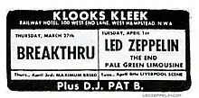 Klooks Kleek was a jazz and rhythm 'n’ blues club on the first floor of the Railway Hotel, West Hampstead, north-west London.[1] Named after "Klook's Clique", a 1956 album by jazz drummer Kenny Clarke (Savoy Records 12006), the club opened on 11 January 1961 with special guest Don Rendell (tenor sax) and closed nine years later on 28 January 1970 after a session by drummer Keef Hartley’s group.