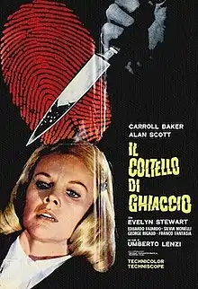 Il coltello di ghiaccio (lit. English: Knife of Ice) is a 1972 giallo film directed by Umberto Lenzi and starring Carroll Baker, Evelyn Stewart, and George Rigaud. Both Baker and Stewart featured in several other films helmed by Lenzi. The film follows a mute woman who finds herself in danger when a serial killer begins stalking the Spanish countryside. The title takes its name from a quote attributed to Edgar Allan Poe, in which he refers to fear as a "knife of ice which penetrates the senses down to the depth of conscience";[4] the quote, however, was a fabrication by the filmmakers.[5]