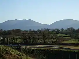 The Knockmealdown Mountains (Irish: Sléibhte Chnoc Mhaoldomhnaigh) are a mountain range located on the border of counties Tipperary and Waterford in Ireland, running east and west between the two counties. The highest peak of the range is Knockmealdown, in County Waterford. On the western side of the summit, the range is crossed by a high pass called ‘The Vee’ through which runs the old mail coach road from Lismore to Clogheen.[1]