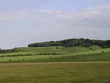Knoll Camp, or Damerham Knoll, is the site of an Iron Age univallate hill fort located in Hampshire. The fort comprises a circular earthwork containing about four acres. There is a single ditch with inner rampart and traces of counter scarp bank.[1][2] The site is a scheduled ancient monument no.118. Grim's Ditch also runs throughout this area. The footpath/bridleway from the nearby long barrows of Grans Barrow and Knap Barrow runs southeast along the ridge through the centre of the hill fort, leaving through the original SE entrance,[3] and you could easily miss the ditch and bank as you cross it. The interior is thickly wooded and brambled.[4]