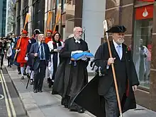 The Knollys Rose Ceremony is an annual event led by the Company of Watermen and Lightermen. The ceremony dates to 1381 and is held each year in June. A single red rose is snipped from the garden in Seething Lane, placed on an altar cushion from All Hallows-by-the-Tower and carried in procession west to the Mansion House where it is presented to the Lord Mayor of London.[1][2][3]