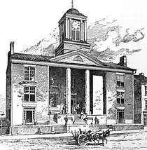 Construction on Knox County's third courthouse began in 1839, and was completed in 1842.[7] This third courthouse was a Federal-style structure with Greek Revival elements, and was constructed by John Dameron and Drury P. Armstrong.[9]