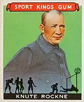 Knute Kenneth Rockne (/kəˈnuːt/ kə-NOOT,[3] though commonly pronounced /nut/ NOOT;[4] March 4, 1888 – March 31, 1931) was an American football player and coach at the University of Notre Dame. Leading Notre Dame for 13 seasons, Rockne accumulated over 100 wins and three national championships.