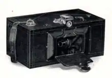 The design of the Panoram was patented by Kodak Brownie designer Frank A. Brownell[5] and released as a series of models.[6][7][8][9] It was about the size of a shoe-box and could be hand-held for shooting landscapes,[10] and Kodak described it as "a camera of few parts. Its operation is very simple and good pictures will be obtained from the beginning."[11]