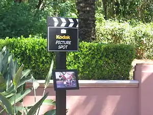 A Kodak Photo Spot (also called Kodak Picture Spot or Kodak Photo Point[1]) is a location with a Kodak-sponsored sign indicating a recommended spot from which to take a photograph. They are found in areas popular with tourists and are particularly common in Disney theme parks.[2] This was until 2012, when the Kodak company filed for bankruptcy, and ended their sponsorship as the camera and film supplier for Disney Parks. In 2013, Nikon became the official sponsor of camera supplies in Disney Parks in the US and the Kodak Photo Spots were re-branded as Nikon Photo Spots.