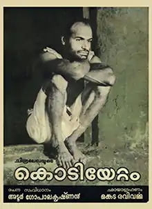 Kodiyettam is a Malayalam-language film written and directed by Adoor Gopalakrishnan. The film stars Bharat Gopy in the lead role. Notable smaller roles were played by K. P. A. C. Lalitha, Kuttyedathi Vilasini, Azeez and Adoor Bhawani. The film depicts the life of Shankaran Kutty, a carefree simpleton who eventually rises to be a mature, responsible adult. The title of the film translates to 'Ascent' which symbolizes the growth of Shankaran Kutty.[1]