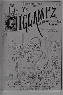 In 1874, Hearn and the young Henry Farny, later a renowned painter of the American West, wrote, illustrated, and published an 8-page weekly journal of art, literature and satire entitled Ye Giglampz. The Cincinnati Public Library reprinted a facsimile of all nine issues in 1983.[22] The work was considered by a twentieth century critic to be "Perhaps the most fascinating sustained project he undertook as an editor."[23]