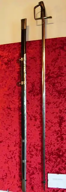 A koncerz (Polish pronunciation: [ˈkɔn.t͡sɛʂ]) is a type of sword used by Polish-Lithuanian hussars in the Renaissance period. It is a narrow and long thrusting sword, generally used by a type of heavy cavalry (husaria, the famed Polish hussars) and optimized to defeat body armor (either by piercing directly through the metal links of mail armour, or by thrusting at the exposed gaps between the plates of plate armour), but was not used to cut or slash at enemy combatants.[1]