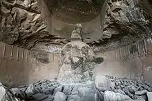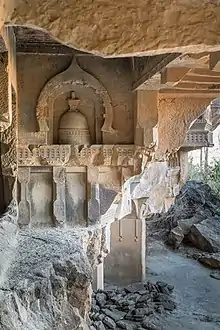 The Kondana Caves are located in the small village of Kondana, 33 km (21 mi) north of Lonavala and 16 km (9.9 mi) northwest of Karla Caves. This cave group has 16 Buddhist caves. The caves were excavated in first century B.C. The construction on wooden pattern is notable.[1] One can reach the cave by descending from Rajmachi village.[2]