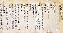 - a letter in Kusunoki Masashige's own handwriting expressing the desire to help in the defense of Kongō-ji which was rumoured to be attacked by the Kamakura shogunate after the failed attempt to take rulership over from the bakufu.[41][10]