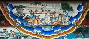 Kong Rong (ⓘ) (153 – 26 September 208[1]), courtesy name Wenju, was a Chinese poet, politician, and minor warlord who lived during the late Eastern Han dynasty of China. He was a 20th generation descendant of Confucius.[2] As he was once the Chancellor of Beihai State, he was also known as Kong Beihai. He was defeated by Yuan Tan in 196 and escaped to the capital Xuchang. For being a political opponent of Cao Cao and humiliating him on multiple occasions, Kong Rong was eventually put to death on various charges.
