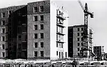 Other foreign architects and planners were brought to the Soviet Union around this time, as the government was about to reach the end of its First Five-Year Plan in 1932, the aim of which was to transform the Soviet Union from an agriculture state to an industrial powerhouse.[7][8] Up to 800 Germans then worked in the Soviet Union's building industry.[9] The architect Ernst May was also working in Moscow leading a group of young European architects.[6]