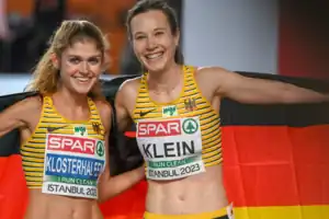 - ↑ "Klosterhalfen stürmt mit Gala zum 1500-Meter-Titel". sport.de (in German). Archived from the original on 23 August 2019. Retrieved 23 August 2019.