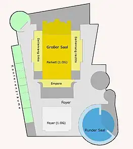 | Great Hall(Rolf-Böhme Saal) (1000 m2) | 1776 (1774)[1] people | |