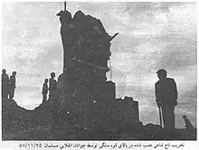 On top of the peak of this mountain, there was a symbol of the Pahlavi Crown. Also, two human statues were installed next to the pool and in front of the restaurant and the hall of Koohsangi. After the Islamic revolution, because they were naked, with the crown symbol of Pahlavi, they were dismantled.[6]