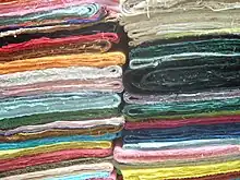 Korean paper or hanji (Korean: 한지) is the name of traditional handmade paper from Korea.[1][2] Hanji is made from the inner bark of Broussonetia papyrifera known colloquially as paper mulberry, a tree native to Korea that grows well on its rocky mountainsides, known in Korean as dak. The formation aid crucial to making hanji is the mucilage that oozes from the roots of Hibiscus manihot. This substance helps suspend the individual fibers in water.