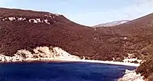 There are many such small beaches along the coast of Istria. Tourists from all over Europe vacation on this coast. All the beaches consist of small rounded flat stones of many different colors. In the 1820 Cadastro Franceschino maps the beach was called Porto Voscice also called in 1632 Porto St. Giovanni and was one of the five ports on the east coast of Istria from Fianona to Voscice.[10] This was the spot where a flat bottom boat called Trabacula came to load logs of timber for Trieste and Venice. The forest owners would cut trees and load them on a small pier where the boat would dock to load the timber. The boat captain would pay one half of the value of the timber and the other half on the next trip. According to the historians, in 1616, during the war with Turkey, in a small inlet of Punta Nera or Crna Punta a Turkish boat was anchored where it could not be seen by the sea or land. The local people happened to see the boat and called for help. They overtook the boat and took some prisoners of the crew.[11] PageXVI Title:Archeografo Triestino: Raccolta di Memorie, Notizie, documenti...Vol. 1 Albona cenni storici Statuto Municipale della Citta d'Albona del A'1341 (Published by Societa del Gabinetto di Minerva in Trieste 1870)