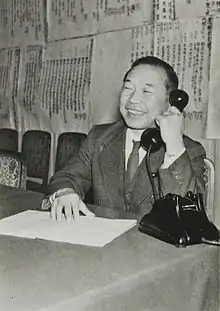 Kōzō Sasaki (佐々木 更三, Sasaki Kōzō, 25 May 1900 – 24 December 1985) was a Japanese socialist agitator and politician. The longtime leader of the left wing of the Japan Socialist Party in the postwar period, he served as chairman of party from 1965 to 1967.