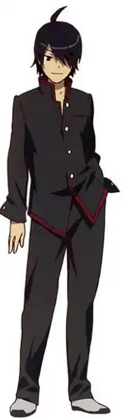 Araragi is the protagonist of the Monogatari light novel series. He is a third-year high school student who fails every subject except mathematics. The series starts with Bakemonogatari where he meet his antagonistic classmate Hitagi Senjougahara after saving her from falling to the stairs. Despite Senjougahara's threats, Araragi notices she has several problems. He offers his help, revealing his own secret of being part vampire in the process. Once Araragi helps solve Senjougahara's problem, she becomes friendlier with him, talking to him several times until she confesses she is in love with him. As Araragi responds to her feelings, the two start dating and he often asks her with help with studying. Although Araragi initially has dates with Senjougahara, Araragi requests her girlfriend's aid into improving his academics as he had poor interests into school before meeting her.[9] The prequel novel Kizumonogatari later reveals that after being attacked by a vampire during spring break and becoming a vampire himself, specialist Meme Oshino helps him become human again, though Araragi retains several lingering side effects and vampiric powers such as enhanced regenerative abilities.[10] Araragi occasionally visits Oshino in order to get rid of Apparitions following innocent people, which often result in Araragi sacrificing himself for their sake as he is unwilling to hurt others.[11]