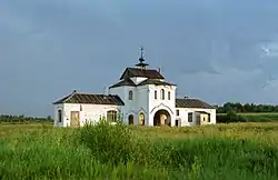 The Kozheozersky Monastery (Russian: Кожеозерский монастырь) is a Russian Orthodox monastery founded by Niphont of Kozheozero and Serapion of Kozheozero in the 1550s. The monastery is located on a peninsula in Lake Kozhozero, in Onezhsky District in the north-west of Arkhangelsk Oblast, Russia. Kozheozersky Monastery is one of the most remote monasteries in Russia; there are no roads leading to Kozhozero, and the only way to get to the monastery is by traversing 30 kilometres (19 mi) on foot.