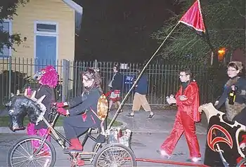 The Krewe of OAK is a small neighborhood New Orleans Mardi Gras krewe and parade held in the Carrollton neighborhood of New Orleans, Louisiana. The parade starts and ends on Oak Street, presumably the origin of the name, although members say that OAK stands for "Outrageous And Kinky".[1]
