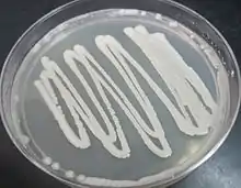 Most species of Kriegeriales are asexually reproducing yeasts that do not currently have a known sexual state. All are white or cream, with elongated cells that reproduce by budding at either end. A handful of species have been studied in greater detail and for these it has been shown that the nuclear division of the yeast state occurs in the bud,[1][3] a common character shared with most other basidiomycete yeasts.[4] However, in Meredithblackwellia eburnea, Kriegeria eriophori, and Yamadamyces rosulatus budding cells remain attached to each other at the base, forming characteristic clusters of cells that are otherwise unknown in basidiomycete yeasts.[1][3][5] The species in Glaciozyma differ in that these are yeasts with a known sexual state.[6] Only two members of Kriegeriales, Kriegeria eriophori and Camptobasidium hydrophilum, are known to form hyphae. Of these, K. eriophori also has an asexual yeast state,[3] leaving C. hydrophilum as the only species in the order that is hyphal throughout its life cycle.[7] Ultrastructural studies of these two hyphal species have determined that they have simple septal pores, as is true for all other known Pucciniomycotina.[8]