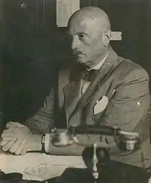 One of Welhaven's keen interests was surveillance and intelligence gathering, and he was central in establishing the Oslo police force's surveillance department before the war.[3] Amongst the people that Welhaven wanted to keep under surveillance was the Norwegian communist Viggo Hansteen.[4] Another group deemed as worthy of surveillance was the Romani, Welhaven responding to a pre-war request from the Gypsy registry in Vienna that as soon as a national registry had been established in Norway it would be sent to Vienna.[5]