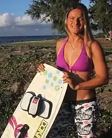 She is the author of two instructional books and an instructional DVD on kitesurfing.[1] In 2009, she published the guide Kitesurfing in the Waves: The Complete Guide. She has also done modelling work, and has modelled for Vogue, and in September 2007 appeared in the German Playboy magazine, appearing on the cover with Theresa Klein and Jenny Bongardt.[5] She is sponsored by Best Kiteboarding, Rial, Air Berlin and Maui Magic.[2] In July 2012, she won the bronze medal in the Slalom World Championships, finishing behind Katja Roose and Caroline Adrien.[6]