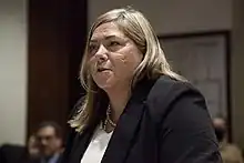 Kristin E. Kassner (born November 22, 1978) is a current member of the Massachusetts House of Representatives for the 2nd Essex District.[1] In 2022 Kassner challenged incumbent Rep. Lenny Mirra. After the initial counting of votes, Kassner lost the election by 10 votes. However, following a hand recount, totals shifted to reflect a one-vote victory for Kassner.[2][3][4][5] Following litigation, appeals, and a review by a special committee of the House of Representatives, Rep. Kassner was sworn in by Governor Maura Healey on Friday, February 3, 2023.[6][7][8]