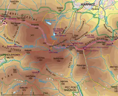 ![]() Map of the central Krkonoše/Karkonosze | |