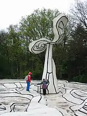 The Kröller-Müller Museum is also famous for its large sculpture garden, within the forest park, of more than 75 acres (30 ha) and one of the largest in Europe, with a fine collection of modern and contemporary sculptures. The garden reflects Helene Kröller-Müller's conception of a symbiosis between art, architecture and nature.[5] The collection includes works by Auguste Rodin, Henry Moore, Jean Dubuffet, Mark di Suvero, Lucio Fontana, Claes Oldenburg and Coosje van Bruggen, Fritz Wotruba, Joep van Lieshout and many more.