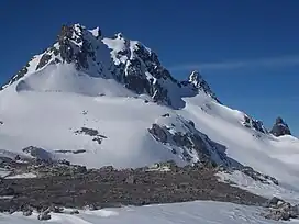 Krone (3,187 m) is a mountain of the Silvretta Alps, located on the border between Austria and Switzerland. It lies south of the Fluchthorn, on the range between the Jamtal (Tyrol) and the Val Fenga (Graubünden). 1 km in southeast from Krone stands the "Breite Krone" = Coruna Lada (3079 m). The Kronenjoch (2974 m) is a saddle between Jamtal/Futschöltal and Val Fenga in the south of the Krone.