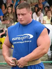 Krzysztof Radzikowski (born August 18, 1981) is a professional strongman competitor from Głowno, Poland.[2] He has competed in 112 International strongman competitions (2nd highest in history) and has won 23 of them, making him the fifth most decorated strongman in history following Žydrūnas Savickas, Mariusz Pudzianowski, Hafþór Júlíus Björnsson and Brian Shaw.[3]