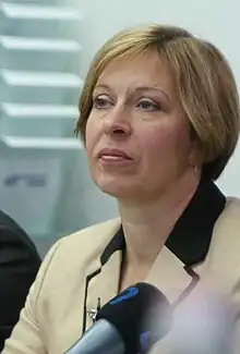 Kseniya Mykhailivna Lyapina (born 5 May 1964) is a Ukrainian politician and People's Deputy of Ukraine. Deputy chairman of the party "For Ukraine!", and head of the Kyiv regional organization (since 2009). Head of the State Regulatory Service of Ukraine (from January 2015 to October 2019).[1]