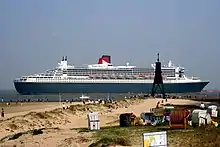 A Ro-Ro vessel MV Kugelbake was built in 2009 for container traffic on the Elbe, registered at Cuxhaven. It has crew of 6, a displacement of 3900 metric tons, is 79.3 m long and 18.6 m wide, and is equipped with a 1900 kW power plant.[8]