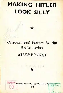 "Kukryniksy" is a collective name, which is derived from the names of three caricaturists Mikhail Kupriyanov (Михаил Васильевич Куприянов, 1903–1991), Porfiri Krylov (Порфирий Никитич Крылов, 1902–1990), and Nikolai Sokolov (Николай Александрович Соколов, 1903–2000) who had met at VKhUTEMAS, a Moscow art school, in the early 1920s. The three began drawing caricatures under the joint signature in 1924.