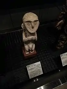 Kulap figurines of limestone or chalk were made in Melanesia.[1] The small funerary sculptures from New Ireland were associated with death rituals.[2] They are typical in the hilly Punam region of the New Ireland province in Papua New Guinea of the Bismarck Archipelago.[3] They were believed to contain the soul of the deceased person whom they were meant to represent, and would be ritually smashed once their usefulness or the period of mourning was over. In more recent years, some have been sold in their intact forms to Westerners, particularly to German administrators.[3][4]