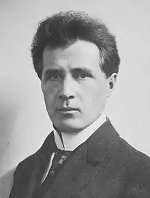 Kullervo premiered on 14 October 1913 with Madetoja conducting the Helsinki Philharmonic Society.[2] It was the final number on a program that also included other orchestral novelties by Madetoja: the Concert Overture (Konserttialkusoitto; Op. 7, 1911); Melody and Little Romance (Melodia ja Pieni romanssi; Op. 17, 1913); Dance Vision (Tanssinäky; Op. 11; 1911); Merikoski, a cantata for mixed choir and orchestra to text by V. A. Koskenniemi (Op. 10, 1911); and the original three-movement version of the Little Suite (Pieni sarja; Op. 12, 1913).[lower-alpha 2]