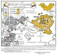 So-called Brändö Villastad was founded in 1907 by a group of businessmen, architects and engineers outside the city of Helsinki, including Allan Granfelt. Their aim was to form on 250 acres of the barely inhabited island a town consisting of modern villas for middle-class families.[3]