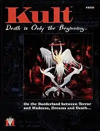 Kult (Swedish for "Cult", stylized as KULT) is a contemporary horror role-playing game originally created by Gunilla Jonsson and Michael Petersén with illustrations by Nils Gulliksson, first published in Sweden by Äventyrsspel (later Target Games) in 1991.[1] Kult is notable for its philosophical and religious depth as well as for its mature and controversial content.