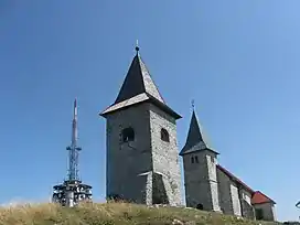 Kum (pronounced [ˈkuːm]; German: Kumberg[2]) is the highest peak in the Slovenian Sava Hills. Its summit is at 1,220 meters (4,000 ft) above sea level. The mountain is also called the "Sava Triglav" (Slovene: Zasavski Triglav) because it is the highest peak in the region. There are a number of structures at the summit, notably a church dedicated to Saint Agnes from the 17th century and a transmitter. It belongs to the settlement of Ključevica.