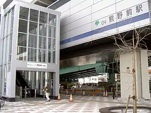 Kumanomae Station (熊野前駅, Kumanomae-eki) is a railway station in Arakawa, Tokyo, Japan, operated by Tokyo Metropolitan Bureau of Transportation (Toei).