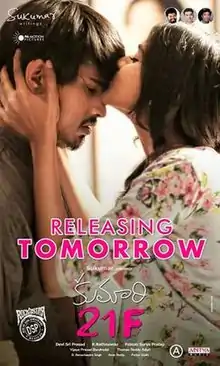 Kumari 21F is a 2015 Indian Telugu-language romantic drama film written by Sukumar and directed by Palnati Surya Pratap. Produced by Sukumar Writings and P. A. Motion Pictures, the film stars Raj Tarun and Hebah Patel. Kumari 21F focuses on a romantic relationship between Siddhu, a chef and Kumari, a struggling model.[5]