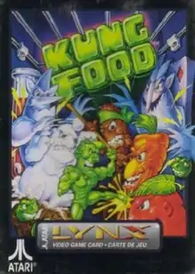 Kung Food is a video game developed for the Atari Lynx handheld by Christian Urqhart and Steven Mitchell and published by Atari Corporation in 1992. The player controls a protagonist who uses martial arts to overcome mutant vegetables that have invaded his freezer.